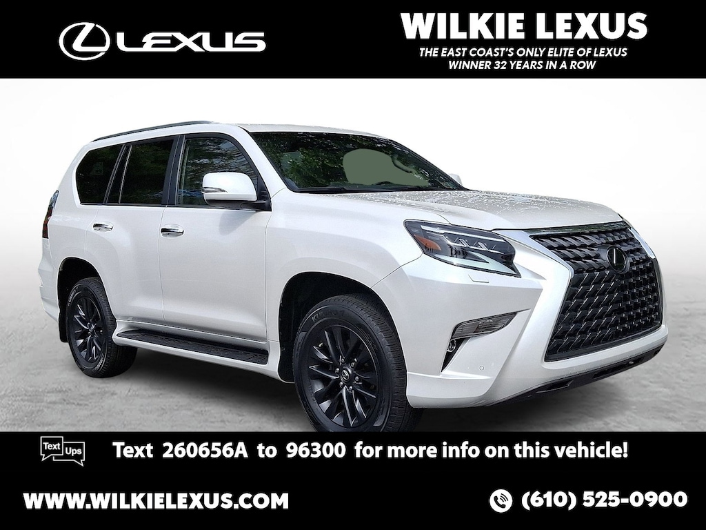 Eminent White Pearl 2023 Lexus GX 460 NAVIGATION, Dual Front & Rear Auto Air Conditioner, Front & Rear Heated Seats, LED Front Fog & Driving Lamp, NuLuxe Seat Trim (EA), Premium Package, Ventilated Front Seats, Windshield De-Icer, Windshield Wiper Control w/Rain Sensor. L/Certified Details: